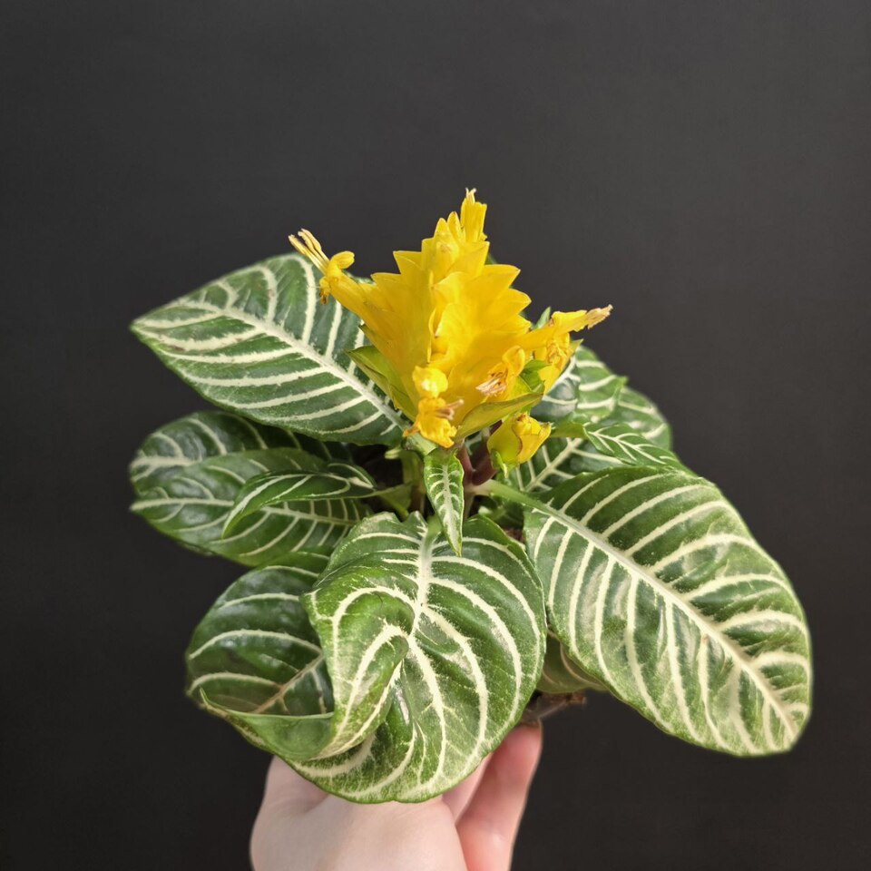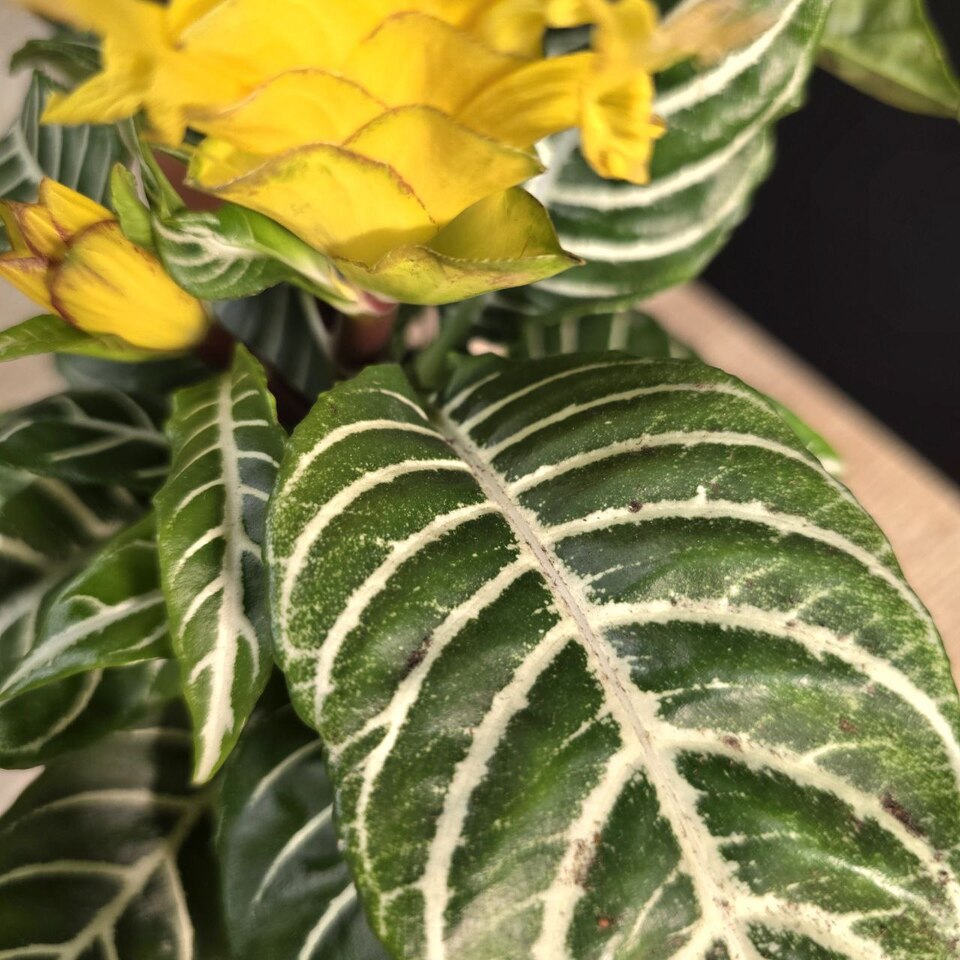 Афеландра "Дания". Экзотическое растение имеет рисунок на листьях зелено-белого тона, пластина темно-зеленая ,соцветия ярко-желтые. Влаголюбива. Высота растения 28 см/диаметр горшка 13см 💡Свет: яркий/рассеянный 💧💧💧Полив: умеренный