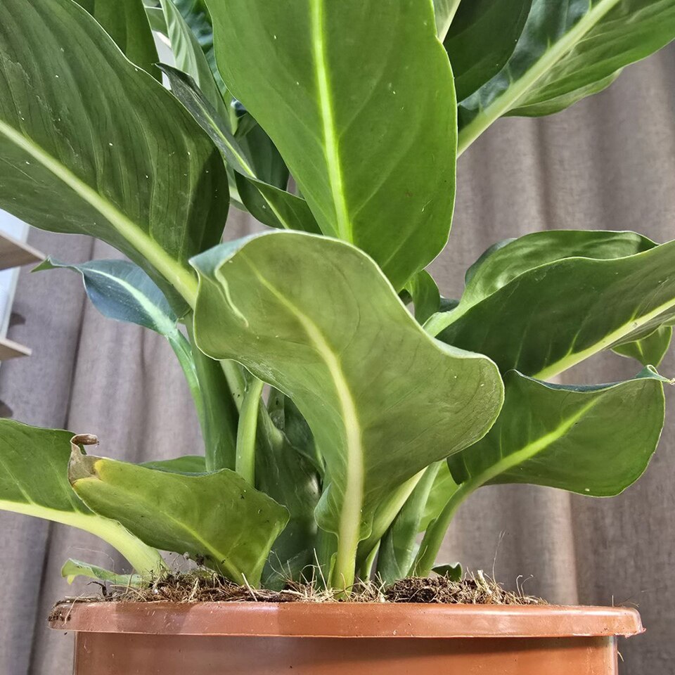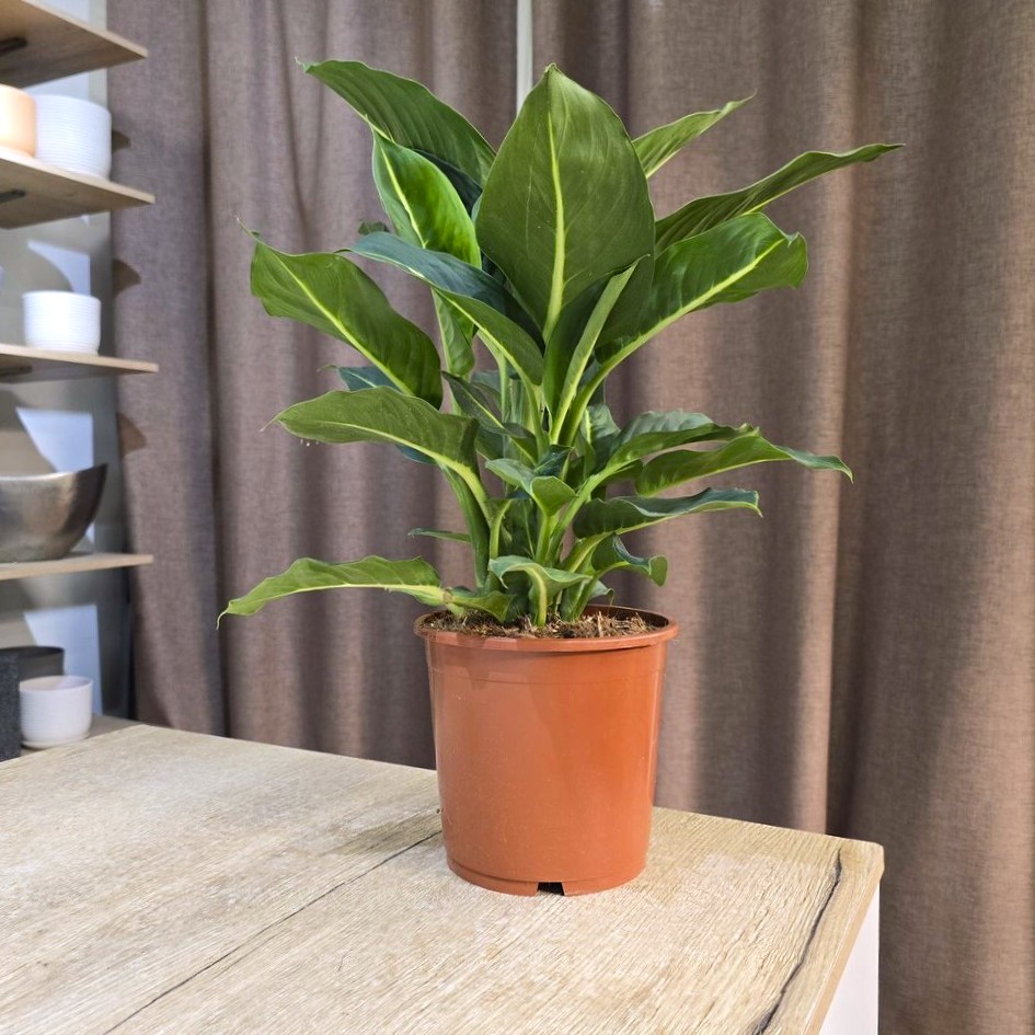 Диффенбахия Грин Мэджик- стильное и неприхотливое растение с ярко-зелеными листьями и выраженной светлой жилкой по центру листа. Высота 55см/ Диаметр 17см. 💡Свет: яркий/ рассеянный 💧Полив: умеренный +опрыскивание