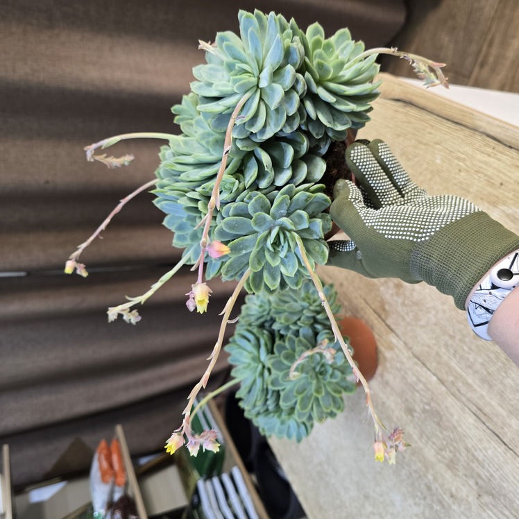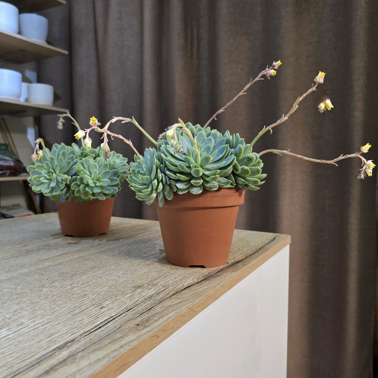 Кашпо отличается своей естественной поверхностью и необычной формой с множеством граней.