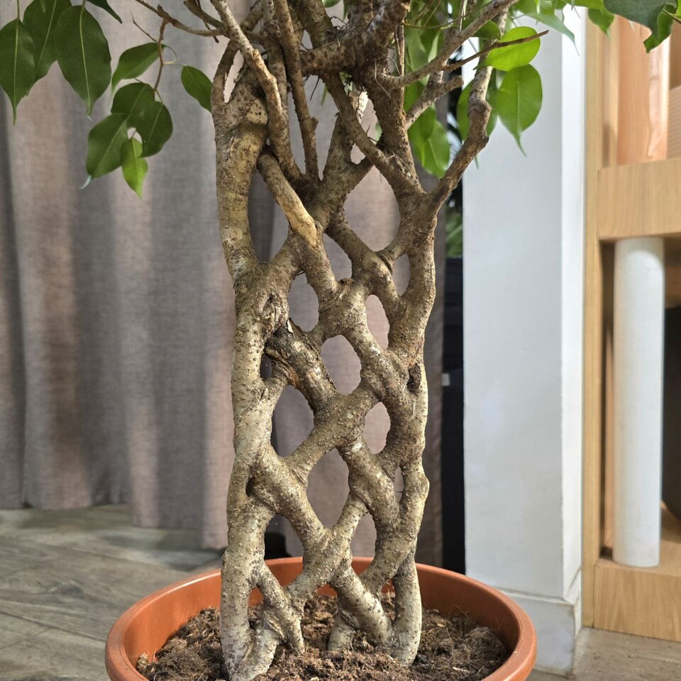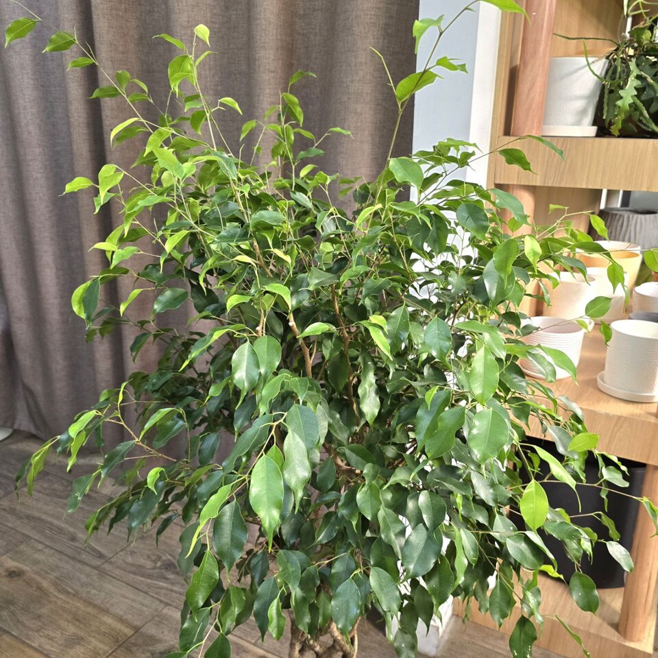 Фикус Бенджамина Экзотик-интересное плетение ствола и пышная ярко-зелёная крона🍀Отличается неприхотливость, изысканным видом и универсальностью, подойдет под любой интерьер🪴 💡Свет: яркий/рассеянный 💧Полив: умеренный+ опрыскивание