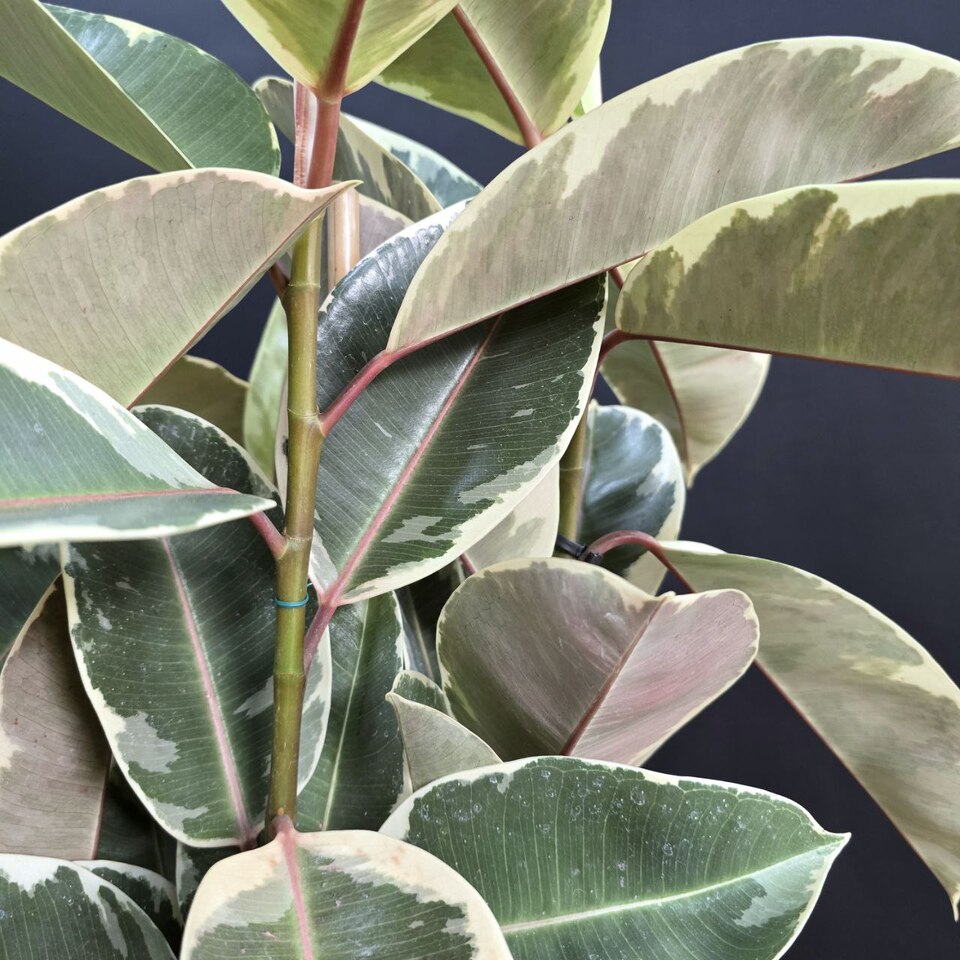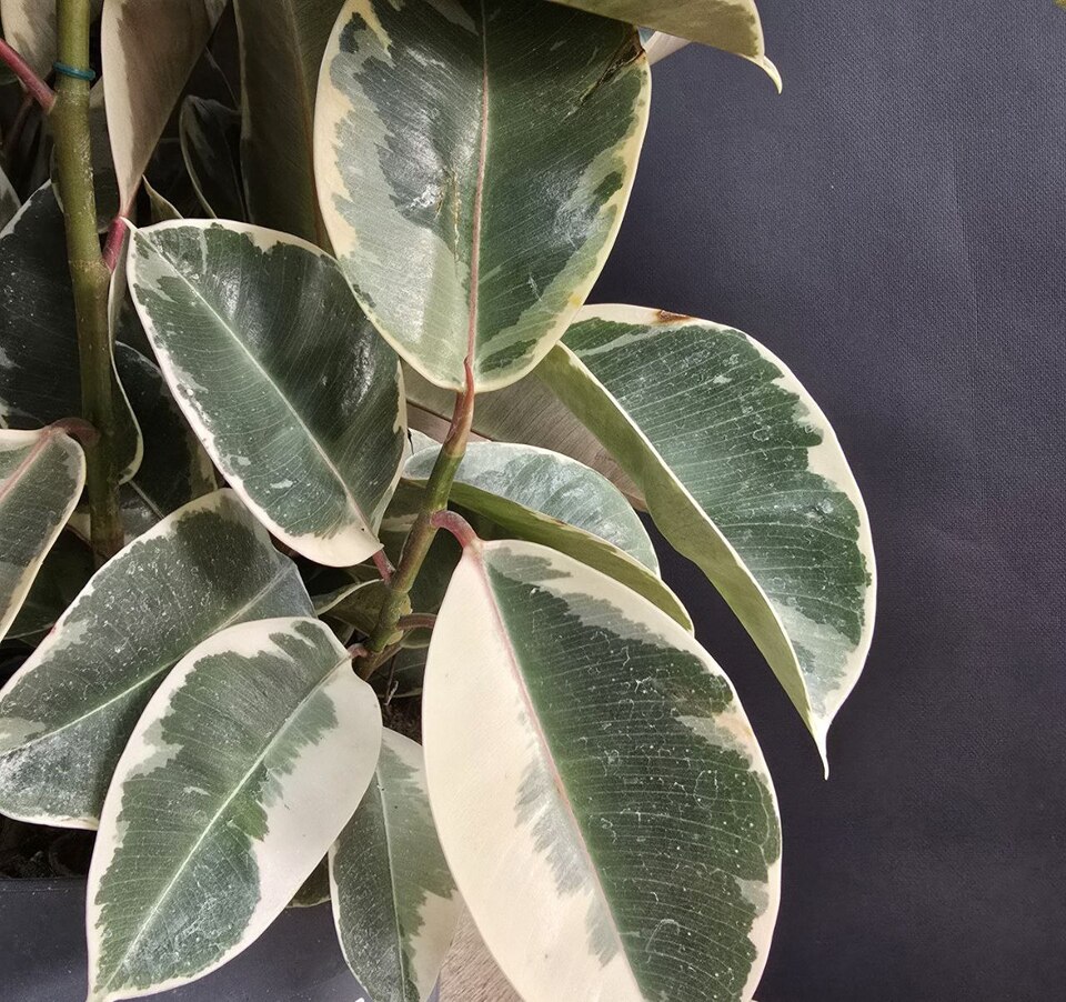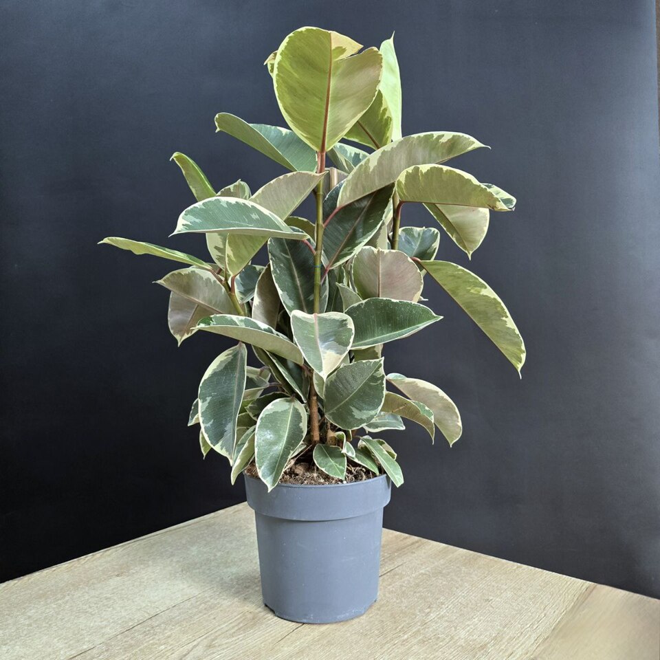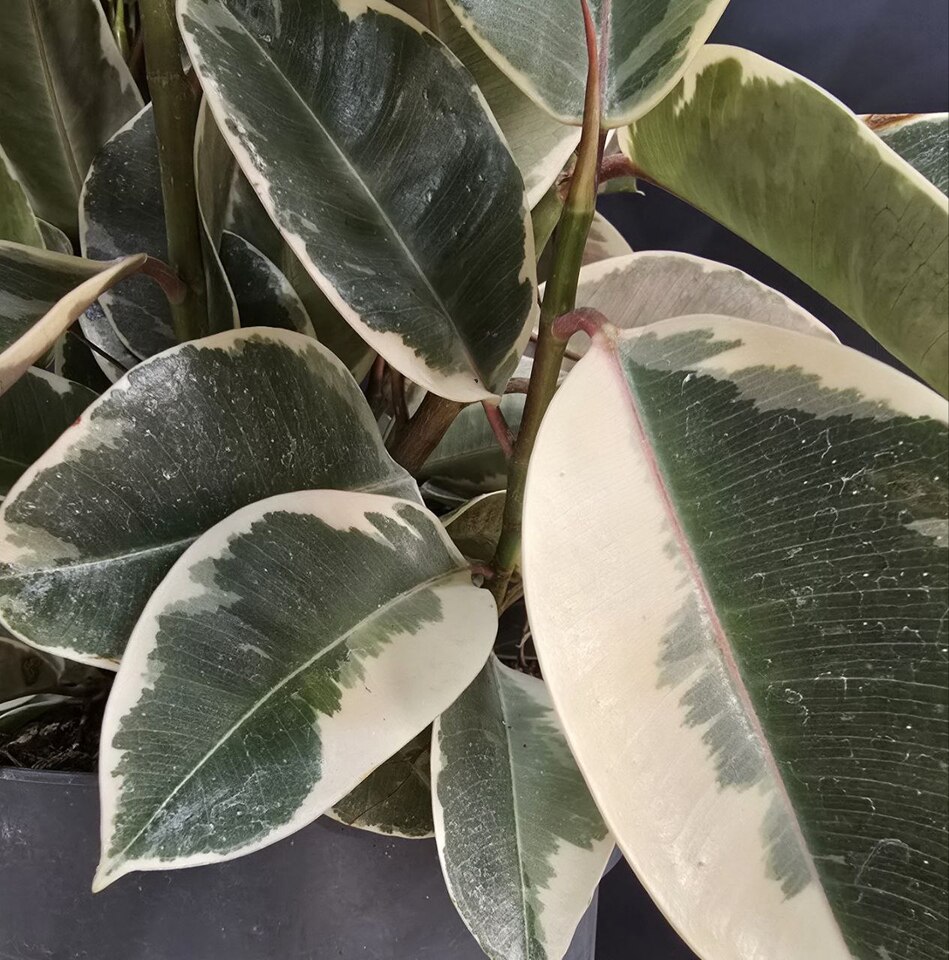 Фикус Эластика Тинеке клумба. Блестящие листья с уникальными узорами от глубокого зеленого до нежного кремового оттенка, каждый ствол дополняет создавая эффект объемности и грации.🪴Высота 80см/ Диаметр 21см. 💡Свет: яркий/рассеянный 💧Полив: умеренный