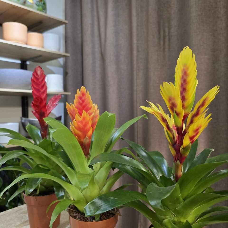 Гузмания - отличается яркими прицветниками, которые привлекают внимание и делают растение очень декоративным. Растение не требует сложного ухода.Стоимость указана за одно растение.•Высота растения 60см/диаметр горшка 12см 💡Свет: яркий/рассеянный 💧Полив: умеренный