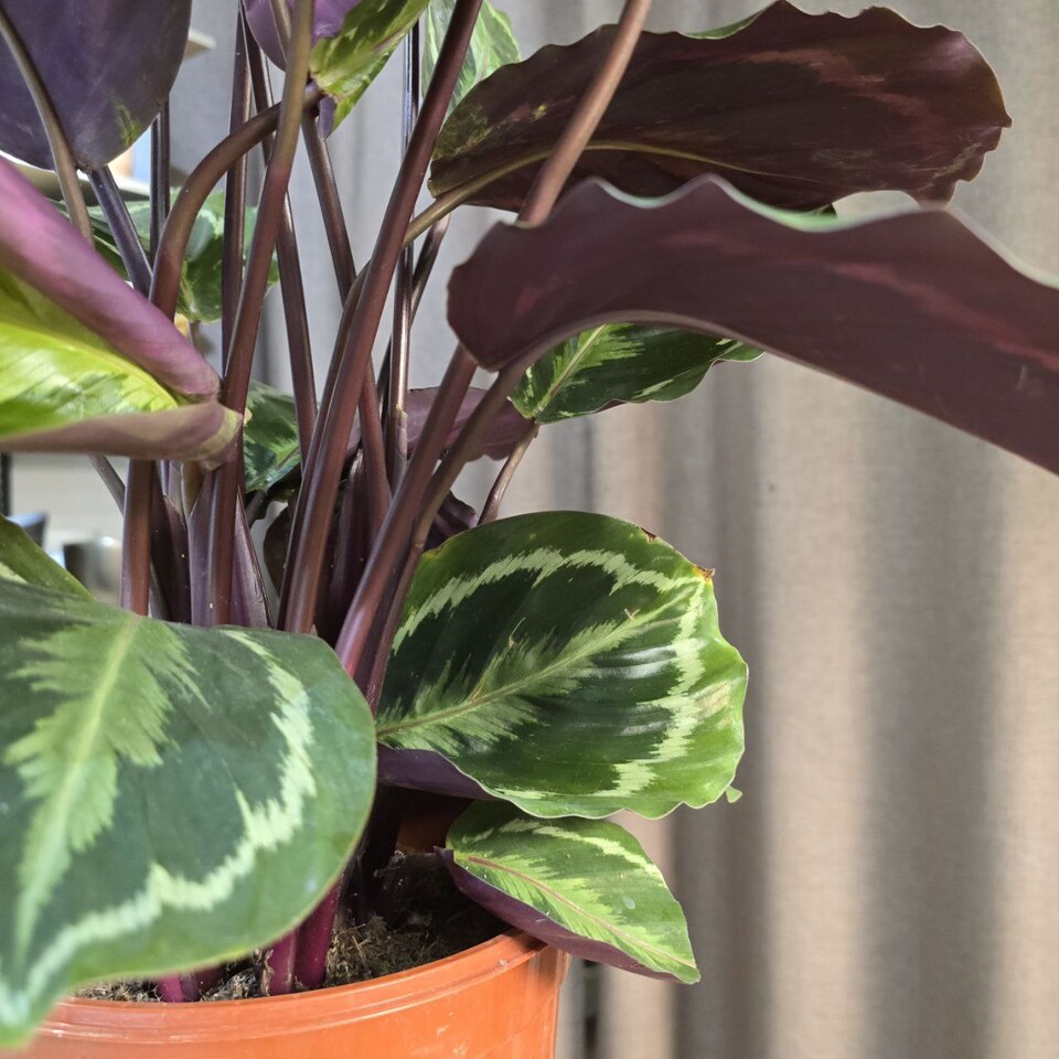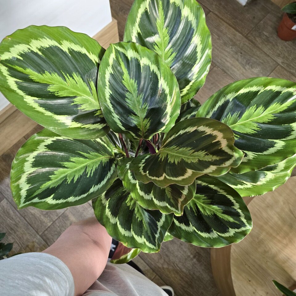Калатея медальон- экзотическое растение с эффектной окраской и узором. Имеет листья, которые начинают свое развитие в виде трубочки. Меняет положение листьев в зависимости от времени суток✨✨✨🪴Высота 70см/ Диаметр 21см. 💡Свет: яркий/рассеянный 💧Полив: умеренный+ опрыскивание