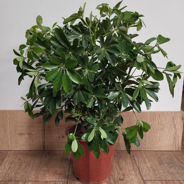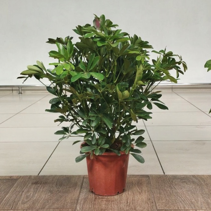 Небольшое, очень декоративное комнатное дерево.Это самый компактный и густой сорт шеффлеры. Растет медленно и хорошо ветвится, отлично подходит для небольших пространств.