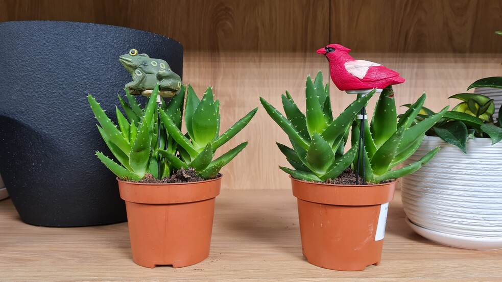 Измеритель влажности почвы . Датчик прост в использовании: достаточно вынуть пластиковый лист снизу и опустить устройство в почву. Он издает звуковой сигнал, когда в почве недостаточно воды, напоминая о необходимости полива. Работает на стандартных батарейках, которых хватает примерно на год. Устройство также создает приятную атмосферу, издавая звуки птиц или лягушек во время работы. Этот датчик помогает избежать ошибок при поливе растений, делая уход за садом проще и приятнее.
