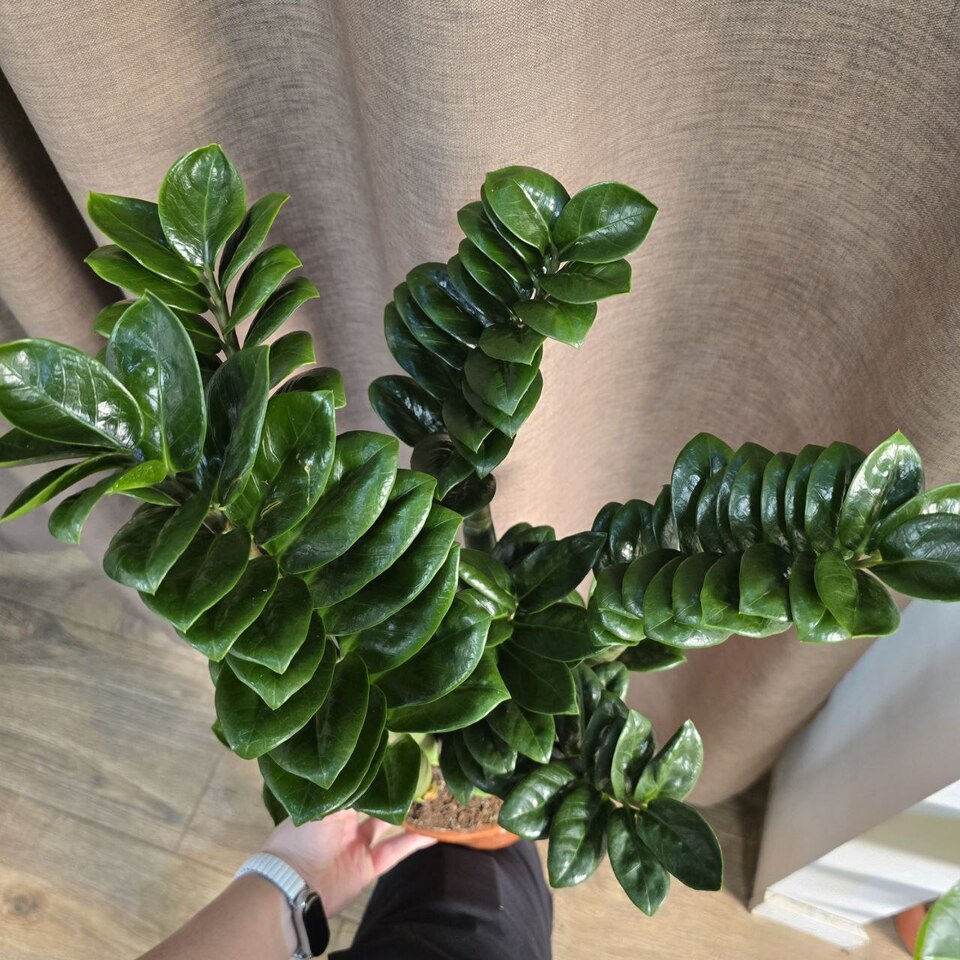 Долларовое дерево или Замиокулькас Зензи это карликовая форма замиокулькаса .Побеги более толстые и листочки сидят очень плотно и как бы закручиваются вниз.В наличии 2 размера растений : -Высота 50см/ Диаметр 17см.(12.900р) -Высота 40см/Диаметр 14см.(5.900р) 💡Свет: рассеянный/полутень 💧Полив: редкий