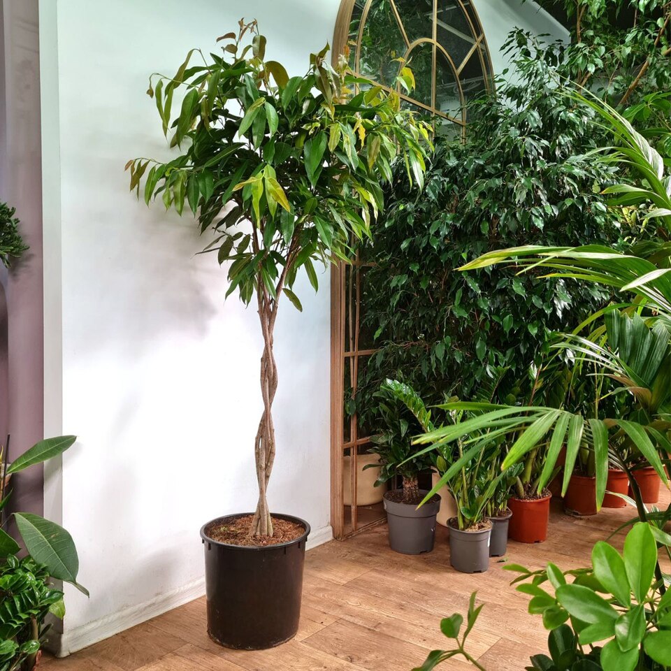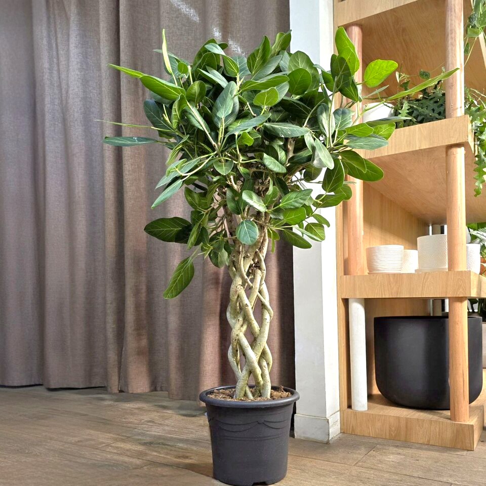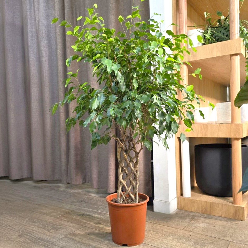 Фикус Бенджамина Экзотик-интересное плетение ствола и пышная ярко-зелёная крона🍀Отличается неприхотливость, изысканным видом и универсальностью, подойдет под любой интерьер🪴