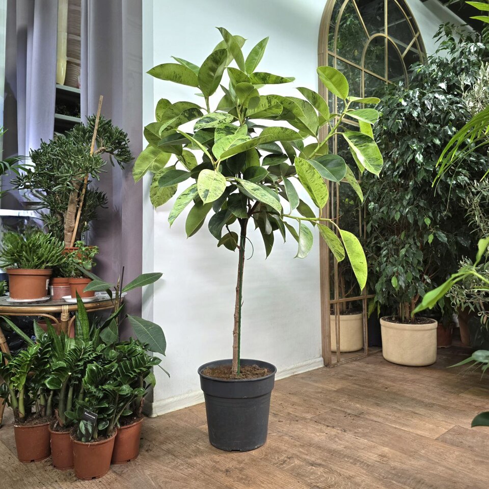Фикус эластика Робуста дерево на штамбе. Великолепное комнатное растение, идеально вписывается в любой интерьер.🪴Высота 210см/ Диаметр 45 см.*Стоимость указана за растение без декоративного кашпо.