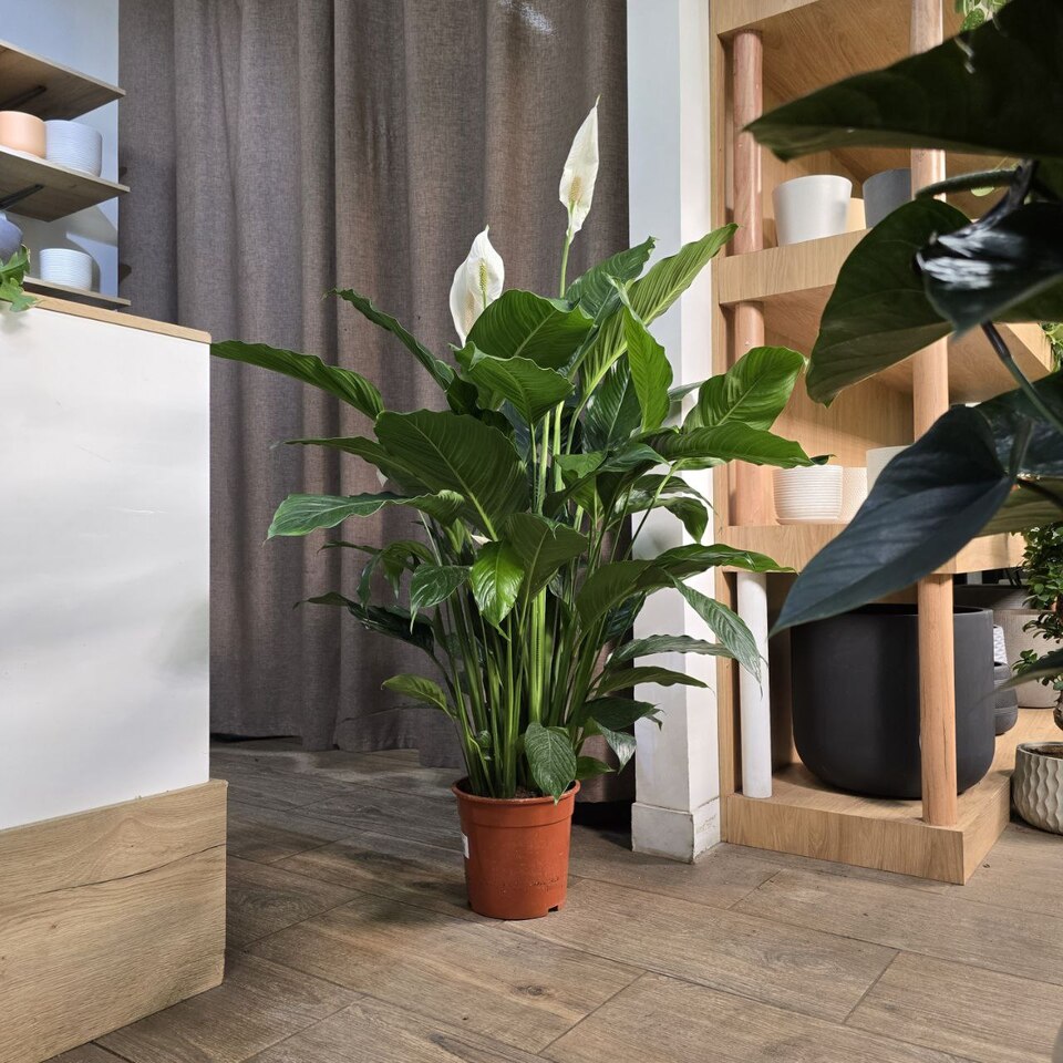 Спатифиллум Шопен клумба-жемчужина тропических лесов. Отличается множеством красивых, белых соцветий и пышной зеленью. Контрастная комбинация создает ощущение чистоты и свежести, наполняя пространство аурой спокойствия и гармонии✨🪴 Высота 65см/ Диаметр 27см.