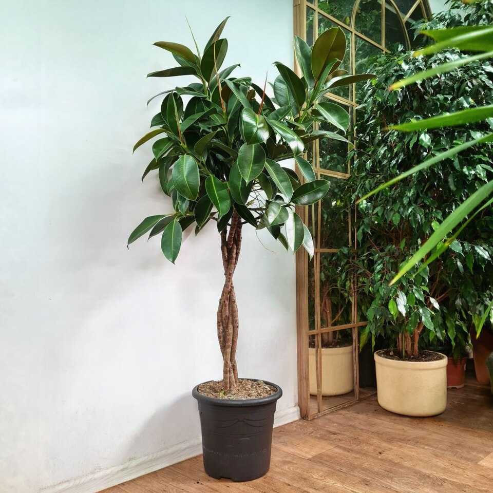 Фикус Эластика Мелани переплетённый- имеет несколько сплетенных между собой стволов, вытянутые, крупные листья с насыщенным оттенком. Деревцем можно украсить дом, квартиру, офис и любые другие интерьеры.