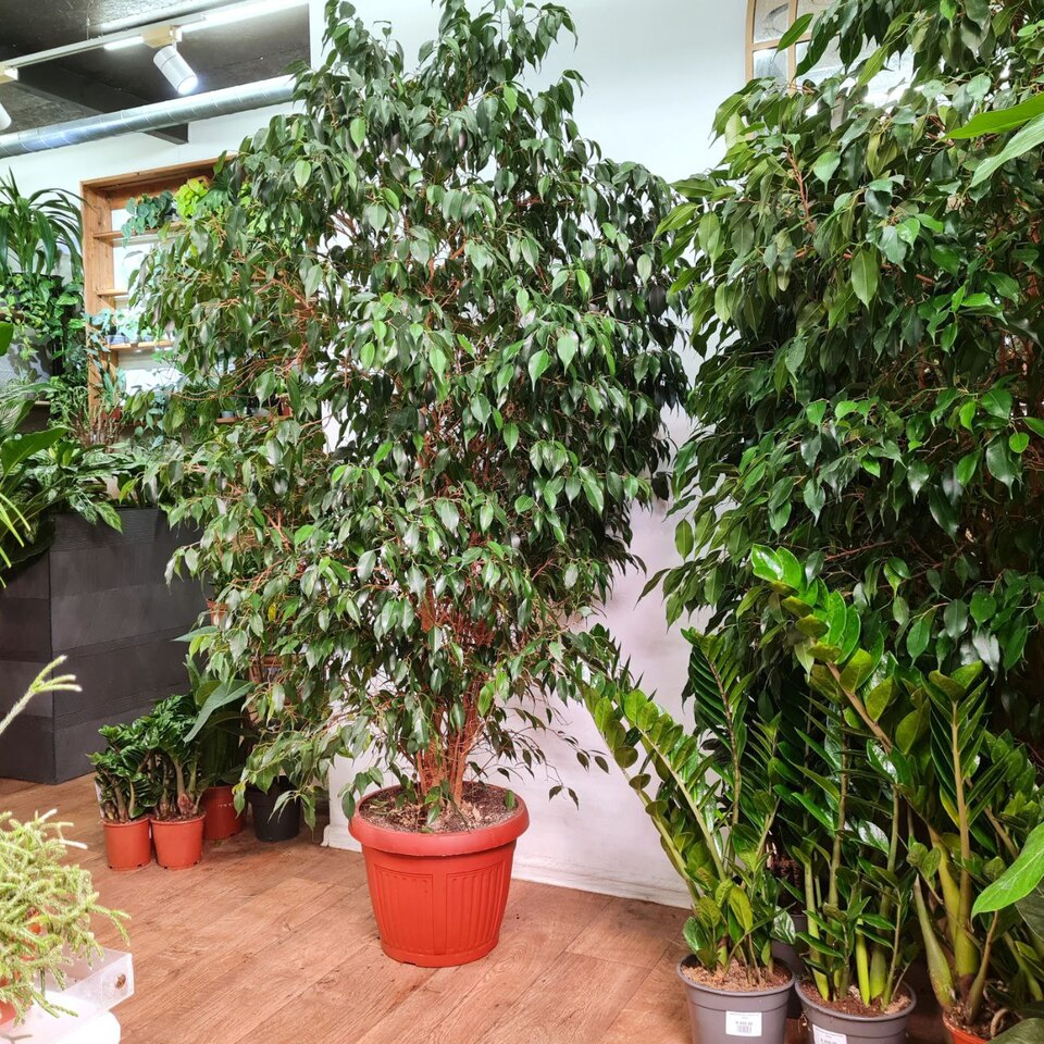 Фикус бенджамина – высокое дерево, символ уюта и долголетия, пришедший к нам из тропических лесов. Изящные, глянцевые листья и грациозный ствол делают его популярным выбором для оформления интерьеров.