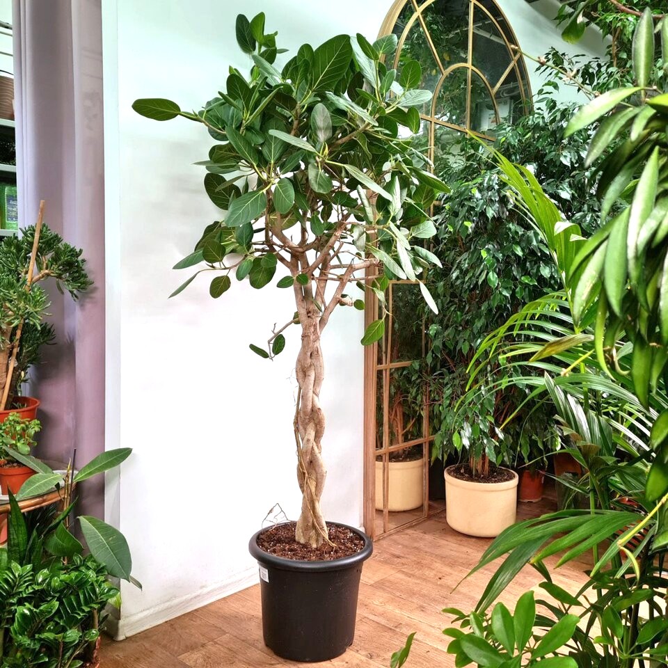 Бенгальский Фикус твист, очаровательное деревце с бархатными листьями. Данный вид особенно уникален переплетённым стволом.