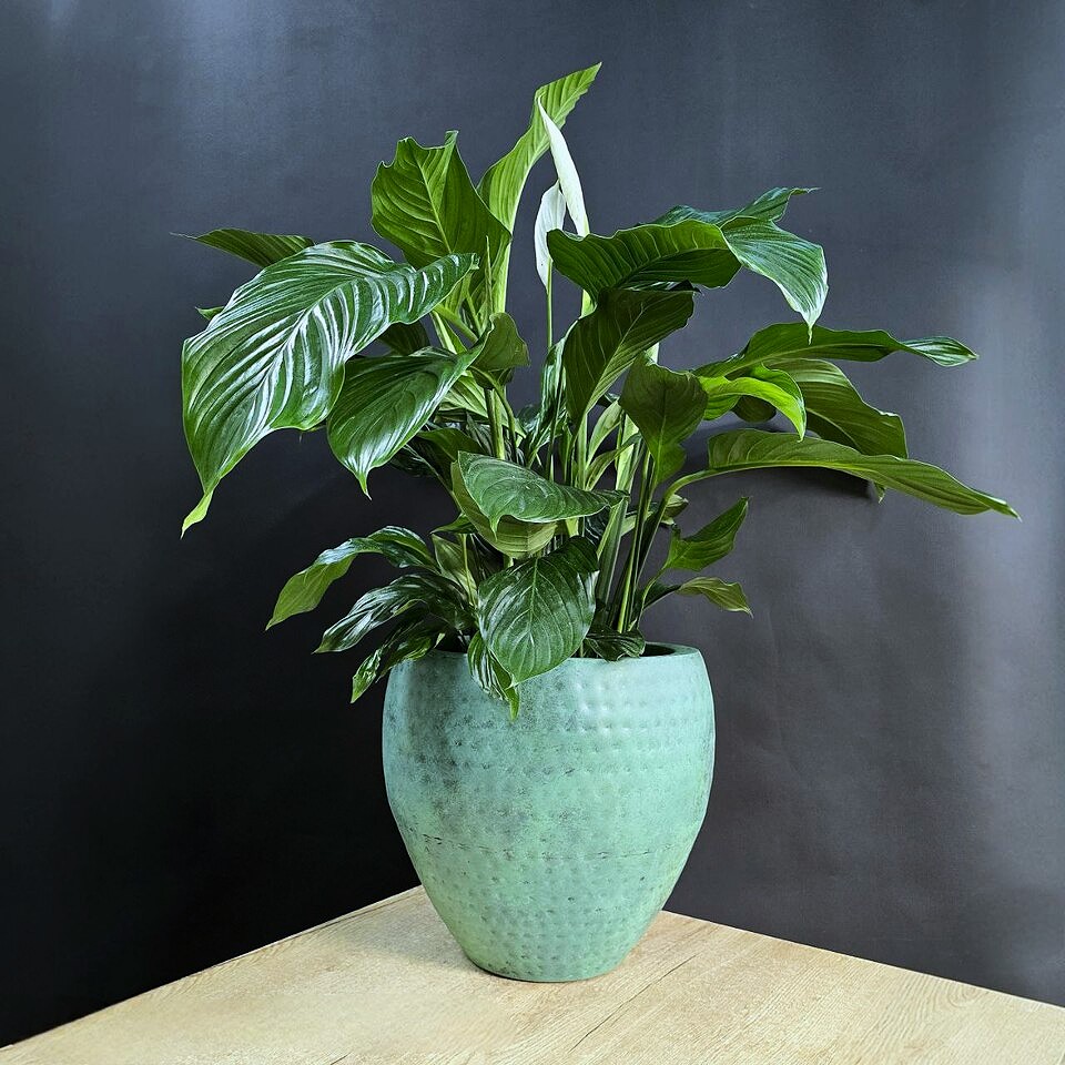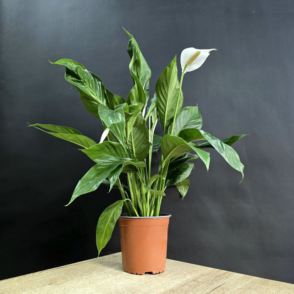 Спатифиллум Верди –отличается красивыми декоративными листьями и необычными соцветиями. Часто его используют как комнатное растение благодаря его компактности и способности очищать воздух.🪴Высота 65см/ Диаметр 17см.