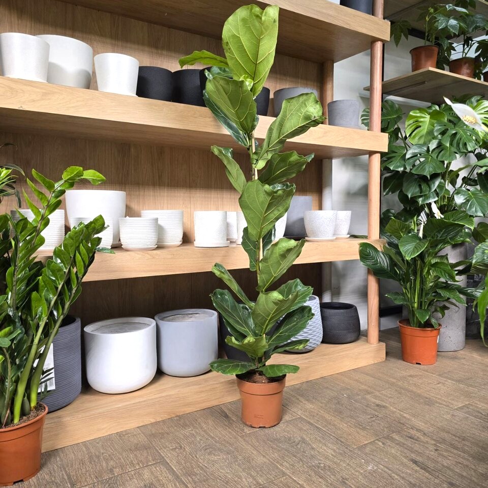 Вечнозеленый скрипичный Фикус Лирата отличает неповторимая яркая листва, насыщенного зеленого цвета и интересная форма роста🪴Высота 140см/ Диаметр 21см.