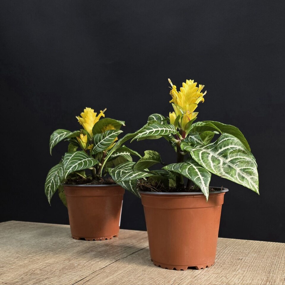 Афеландра "Дания". Экзотическое растение имеет рисунок на листьях зелено-белого тона, пластина темно-зеленая ,соцветия ярко-желтые. Влаголюбива. Высота растения 28 см/диаметр горшка 13см