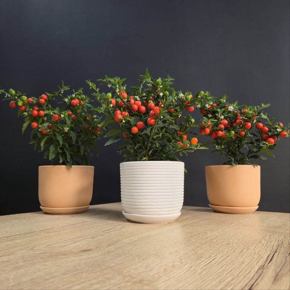 Соланум или паслен цветущее комнатное растение. Его яркие плоды, напоминают мандарин, придают декоративный вид и делают его привлекательным для любителей комнатного цветоводства.*Стоимость указана за растение без декоративного кашпо.🪴Высота 30см/ Диаметр 12см.