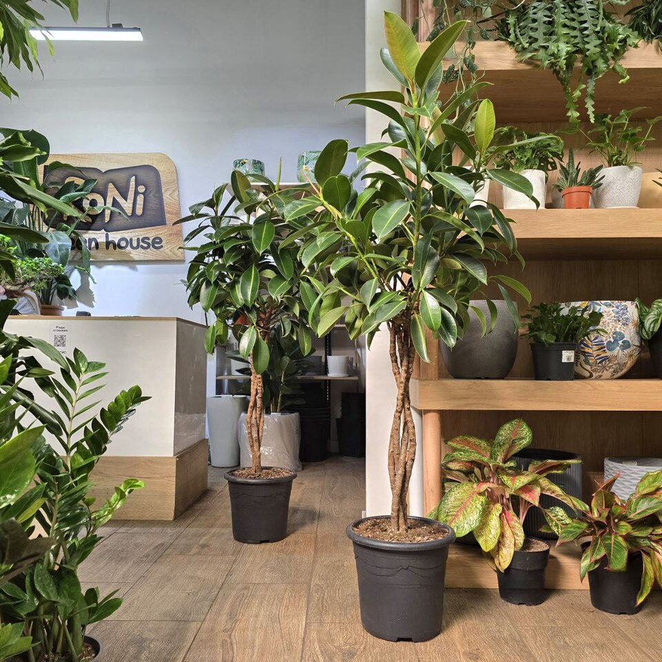 Фикус Эластика Мелани переплетённый- имеет несколько сплетенных между собой стволов, вытянутые, крупные листья с насыщенным оттенком. Деревцем можно украсить дом, квартиру, офис и любые другие интерьеры.